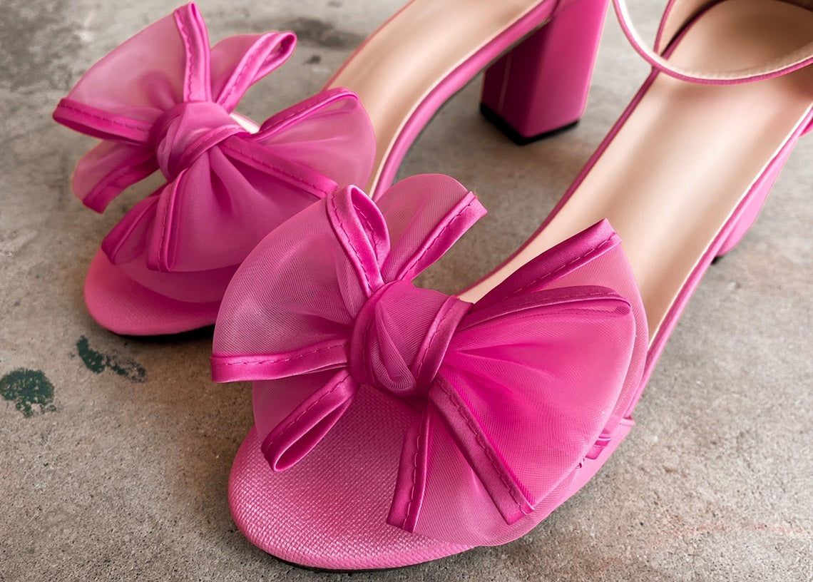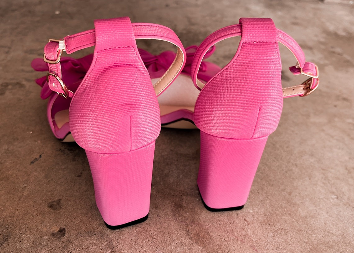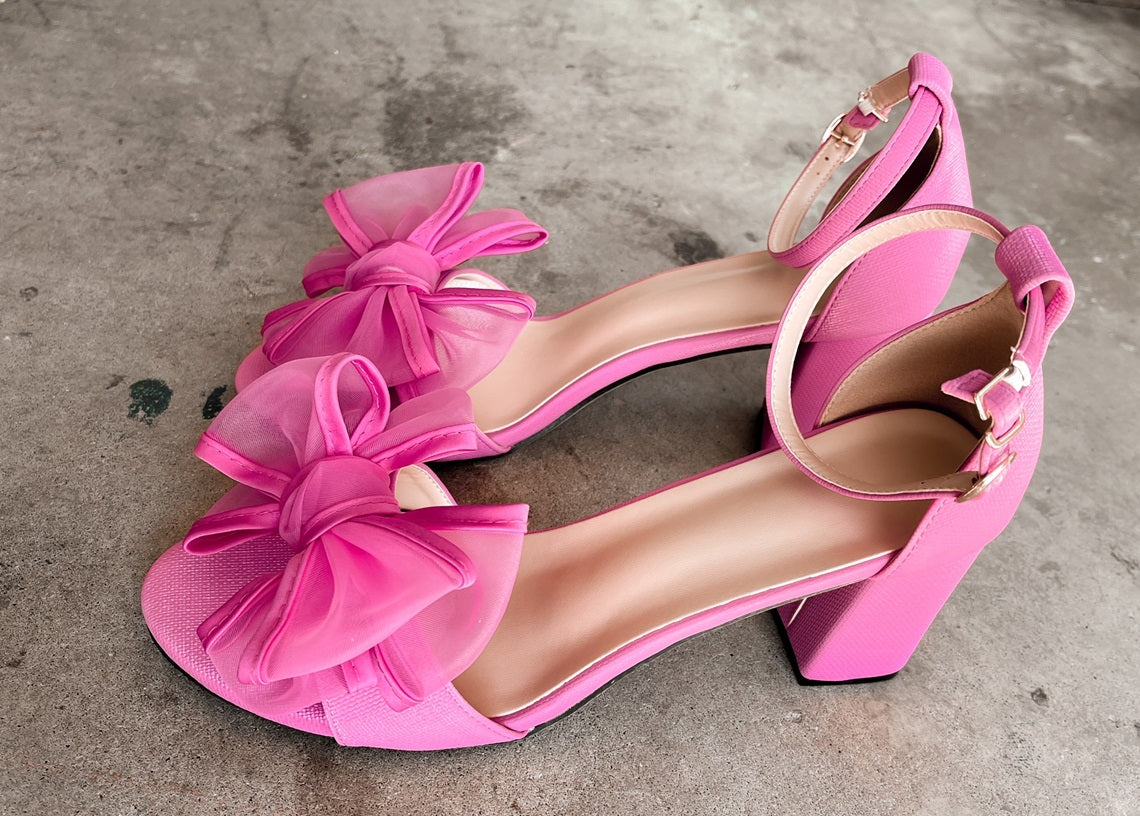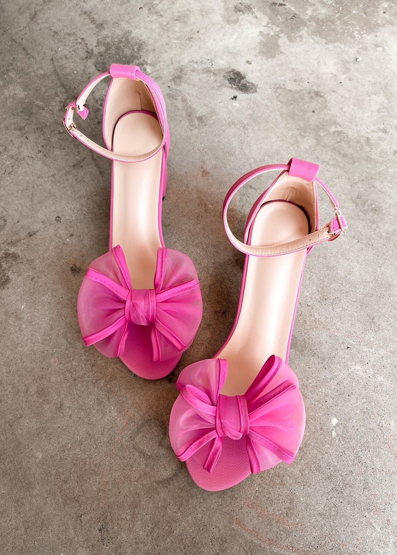 Rosalyn Knot Bow with Ankle Strap Heels in Hot Pink
